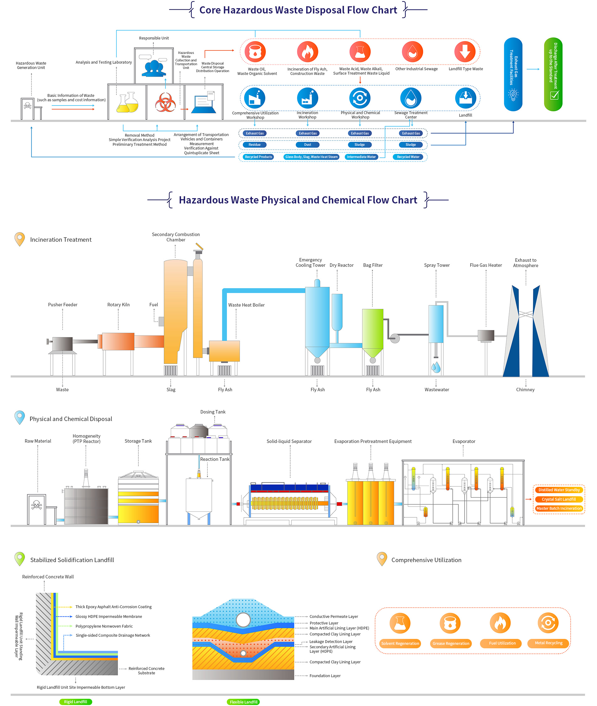 The company is experienced in the construction and operation of large-scale hazardous waste treatment projects with a comprehensive reserve of process technologies and can provide customers with overall solutions such as incineration and disposal, physical and chemical disposal, stable solidification and landfill, comprehensive utilization, hazardous waste inventory management, and on-site industrial services.